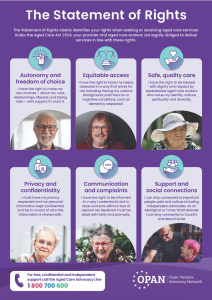 Download OPAN’s Statement of Rights information sheet to learn how the Aged Care Act 2024 protects dignity, respect, and choice for older Australians.